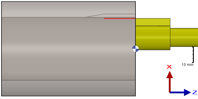 The Retract Distance (Peck) value defined by the user determines the distance of the retraction toolpath away from the workpiece, in the X-axis.