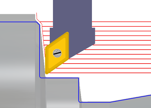 DefinitionThe value of retract is applied on each pass, and is reset at a new diameter. This option is useful in case of vertical insert to protect it (big parts for instance). | ![]() |