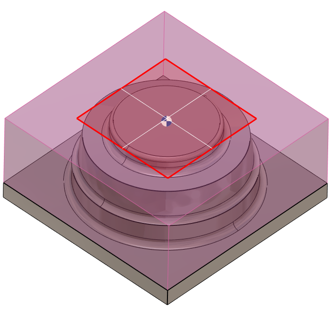 Reference Plane | In this case, a safety plane area is generated accordingly based on the reference axis, up to which all toolpaths are then extended to. Toolpaths that do not touch this plane will not be affected. |