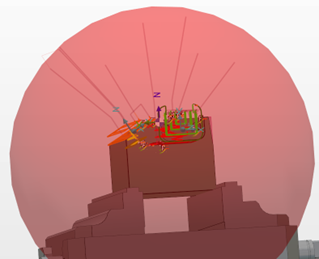 Workplane on Sphere | With the Workplane on Sphere, you get a universal tool for defining the safety areas. Here, the sphere option and the plane option are combined in one setting resulting in the optimal setting for milled components. |