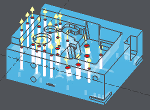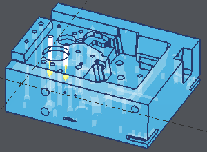 In the following example, we selected in the list the holes that could be roughed by machining done in the reference plane. Then a right-click and choose 'To Stop Up', all the holes are now recovered by solid faces. We chose the red color to distinguish these faces from the solid color. ![]() |