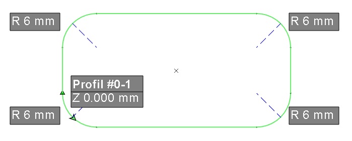 Some information are displayed on the screen, on the profile: profile number, Z altitude, values of radii.
