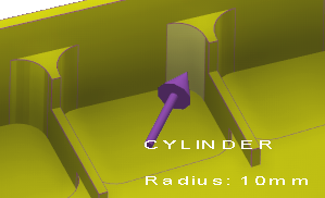 This mode is not really a measurement but enables to obtain information about the solid faces. Move the cursor on a face and it will display its type (plane, cylinder), the orientation (vertical, horizontal, taper…) and sometimes a value (radius, angle,…). This command can be used both in the design environment and in the machining menus when selecting geometry or tools. The information provided can assist, for example, in selecting the appropriate tool. | ![]() | |