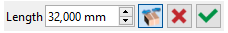 The measure between the two arms of the clevis gives the value of 40 mm. The measure mode used is ‘Distance Cavity’, with one click, but it could have been ‘distance between faces’. Clicking the dimension opens the RapidEdit box for modification. | Then enter 32 mm. The button on the right shows a single arrow. It means that the modification is applied in one direction, according to the face clicked. (or first face clicked in case of ‘measure between faces’). ![]() | By clicking the button, a double arrow is displayed and the modification is applied symmetrically. ![]() |
