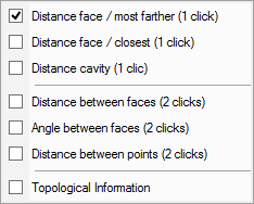 This action is applied on the solids and on the machining stock. This enables to click faces and to accede to a great number of modes of measure.