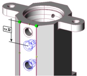 The tolerancing module also enables to modify the topology of a part if necessary. A dimension read on a CAD draft and the real geometry value can be different. Tolerancing will enable you to respect the real dimension without modifying geometry, which can be difficult or maybe impossible. For example, you can move a hole which was defined with the Solid Recognition command. Simply define a ‘tolerance’ between an edge of the face and the hole and change the dimension. The hole is moved and will be machined at its new position, without modifying the geometry by itself. | ![]() |