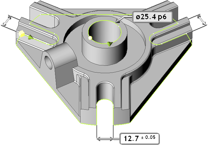 ![]() | One of the biggest problems for a CAM technician when he imports a CAD model, is that he is obliged to modify many geometries which are tolerance. The reason is that the CAD models are always designed respecting the nominal value of a tolerance! Let’s take a concrete example: the bore hole tolerance of the solid part on the right is 25.4P6. The lower tolerance is -0.031, the upper tolerance is -0.018. Consequently, the geometry drawn with the nominal value 25.4 is simply wrong! It is out of tolerance! With GO2cam, you can modify the dimension easily, and choose to machine it according to the lower, the upper or the average value! |