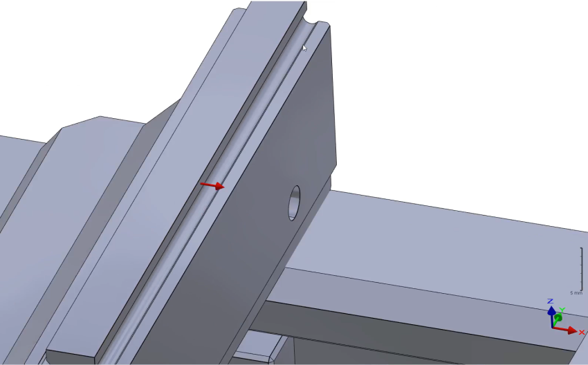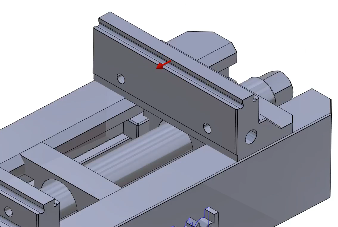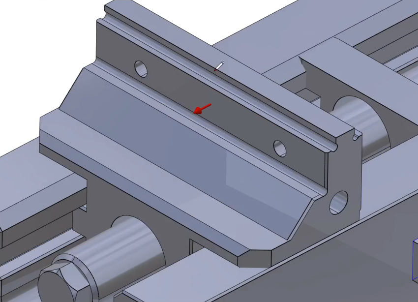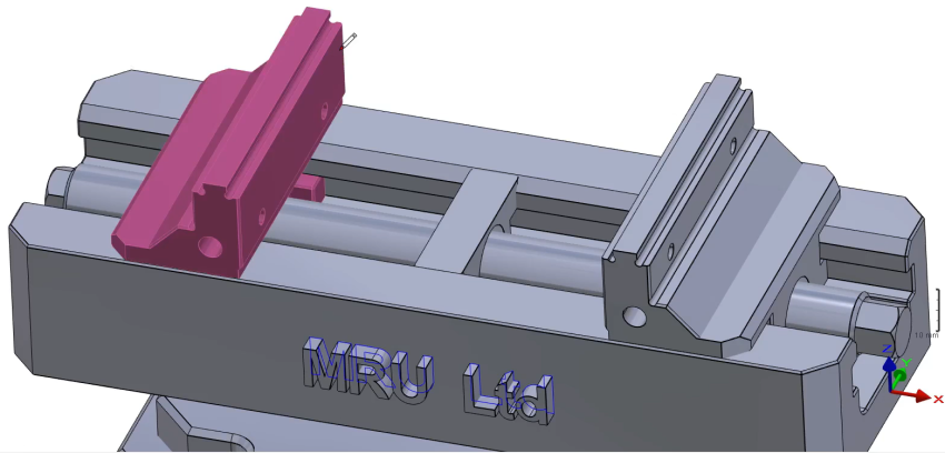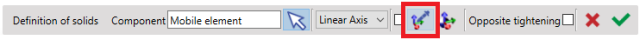 Repeat the process for the second jaw. First, click the command 'Component Vectors' ![]() to create system of axis. Then select the mobile element as shown. | ![]() |