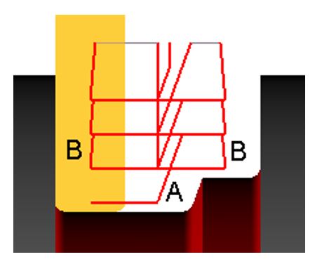 ![]() | Toolpath with X steps and plunges in the middle of the groove. |